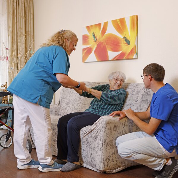 Als Altenpflegehelfer-/in unterstützt du unsere Bewohner/-innen täglich beim Essen, Anziehen oder bei der Körperpflege. Du gehst spazieren oder organisierst und planst Freizeitaktivitäten, wie Spielerunden, Basteln, Bingo. Unter Anleitung unserer Pflegefachkräfte erwirbst du Grundkenntnisse in der Altenpflege, lernst den Umgang mit älteren Menschen und wie du in verschiedenen Pflege- sowie Notfallsituationen angemessen und sinnvoll handeln kannst.
